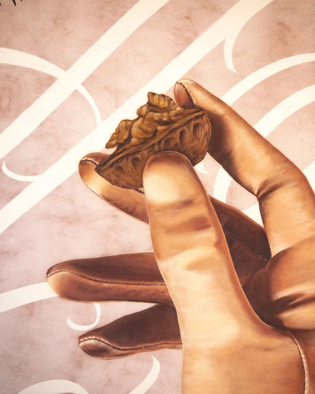 La main vêtue d’un gant offrant un morceau de noix, représente ici, le respect et la responsabilité de l’homme pour préserver la nature sauvage.